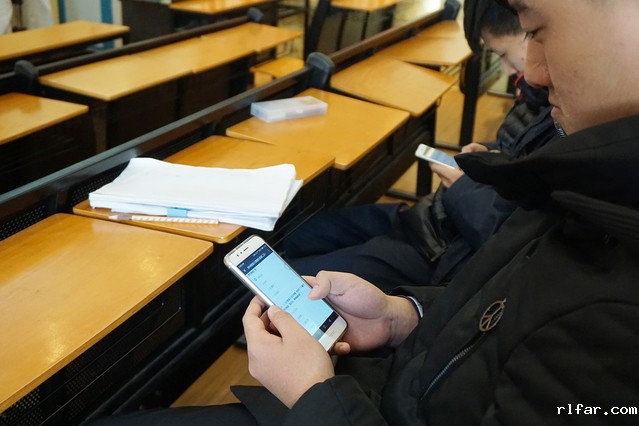 赛前学生正通过手机进行理论题模拟测试理论题训练