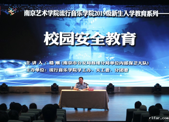 22日19:00,由流行音乐学院主办的安全教育专题讲座在流行剧场举办,主讲人是南京市公安局鼓楼分局单位内部保卫大队的嵇刚警官。整场讲座嵇警官以幽默的语言风格结合实际案例,分别讲述了校园防盗防骗、防校园贷、防毒防艾、防火自救、防传销,以及心理安全和网络信息安全的重要性,为同学们上了一堂生动的安全教育课。讲座安全知识全面,案例触动人心,告诫同学们心中要有法律法规的红线、眼中要有文明公德的底线,行为要有安全意识的隔离线,远离校园贷、毒品等威胁大学生安全和身心健康的不利因素。