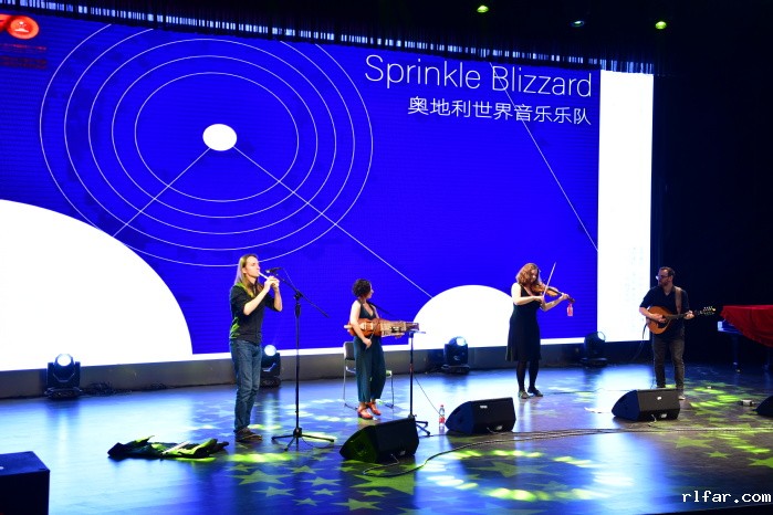 “奥地利Sprinkle Blizzard”作为一支独创组合的世界音乐乐队,以一首带有传统舞曲般旋律的原创作品——《高地(High District)》拉开了音乐会的序幕,一开场就收获在场观众雷鸣般的掌声。《华尔兹(The Waltz)》和《布雷舞曲-治愈(Bouree Cure)》所表现出的激情,带动了现场全体观众跟随音乐动感的节拍拍手互动。紧接着,四位音乐家通过一首旋律悠扬的《徒步旅行者(Wayfarer)》引领观众从热闹与繁华步入独自旅行的安逸。此后,《来自丹尼尔(From Daniel)》《波兰俚语(Slang Polska)》《法式面包士兵(Baguette Soldier)》三首乐曲通过音乐家乐器之间的交流和肢体的律动丰富变化,时而激情澎湃,时而温馨浪漫,展现出音乐所拥有的强烈的吸引力,感染着现场全体观众。最后,“奥地利Sprinkle Blizzard世界音乐乐队”为现场观众奉献了改编自中国传统乐曲《杨柳青》的音乐作品——《Chinese》,四位音乐家在中国传统音乐中融入了瑞典和爱尔兰音乐风格元素,中西合璧的奇妙效果将音乐会气氛推向高潮,为此次活动划上了圆满的句号。