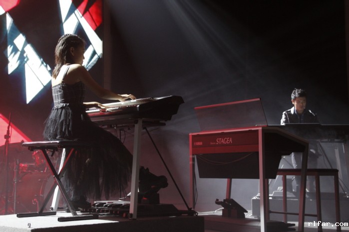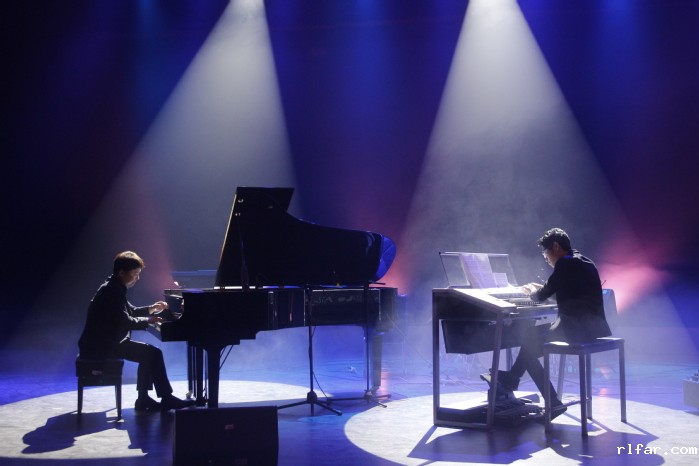 2018级双排键专业的四位同学首先以一首热情洋溢的双排键四重奏《JOY TO YOU》拉开音乐会的序幕。接下来的节目形式多样、精彩纷呈:杨婷婷老师与谷雨晴同学共同演奏双排键合奏《IPHONE》,形象地描绘出快节奏的现代生活;2018级宣昱辰同学用双排键诠释了德彪西管弦乐作品《大海》第三乐章《风与海的对话》,印象派音乐独特的丰富音响色彩让人眼前一亮;2016级汪子超同学与朱曼歌同学的双排键二重奏《DRIVING POWER》,运用电吉他效果模拟公路机车飞驰;可谓酣畅淋漓;黄岑老师与宣昱辰同学通过钢琴与双排键协奏演绎拉赫玛尼诺夫《帕格尼尼主题狂想曲》,传达出一种凝固在旋律之下深沉的、永不褪色的俄罗斯忧郁;瞿奕敏老师与2018届毕业生高金君用“萨克斯+双排键”的组合,共同带来日本大濑户千嶋组合欢快热情的金曲《CARISH》;2017级赵妤涵、刘宇纯、王晶琪三位同学为大家带来现代电子乐遇上经典的《波莱罗舞曲》,台风靓丽,青春洋溢;2018级流行音乐演唱的印林昊同学与双排键带来电影《卑鄙的我》中的经典插曲《HAPPY》;特邀江苏省戏剧学校二胡演奏家、教育家胡丹老师、以及荣获国内外多项大奖的章梓洋同学共同与黄丽媛老师带来二胡与双排键协奏《楚颂》,大气磅礴的旋律如同历史的长河般绵延不绝。音乐会临近尾声,黄丽媛老师联合薛晓论老师、闵艺老师共同献上爵士乐三重奏《I WISH》,将音乐会推向高潮。