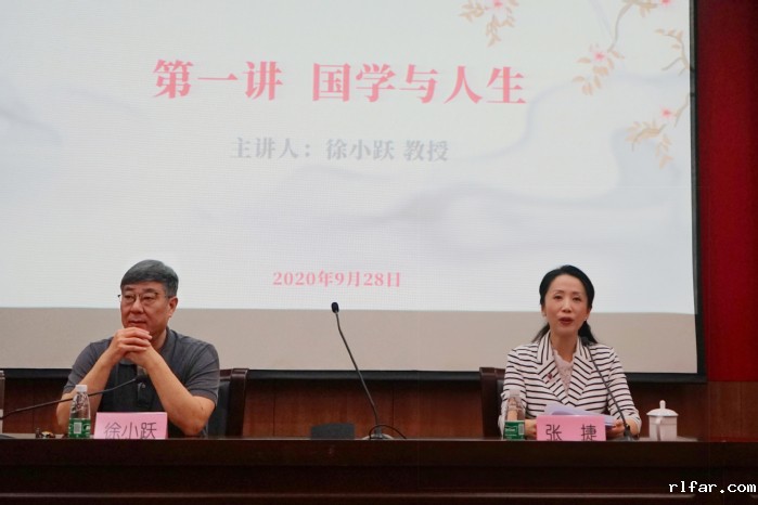 一个多小时的报告不仅仅是语言与思维的碰撞,更是国学精粹与现代智慧的融合。徐小跃教授幽默而富有哲理的学术语言,独到而精辟的理论见解,将国学的智慧化作一股清泉,汩汩流向在场师生的心田,进一步加深我校师生对国学的思想内涵以及中国传统文化、国学与人生的认识和理解,他诙谐的语言让在场掌声迭起,听众频频捧腹,精神境界在不知不觉中得到升华。