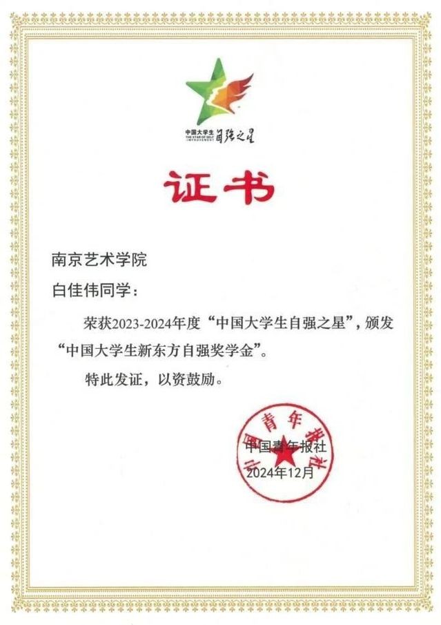 近日,由共青团中央、全国学联指导,团中央基层建设部、中国青年报社、新东方教育科技集团、中国青年创业就业基金会联合举办的2023-2024年度“中国大学生自强之星”评选结果揭晓,优米下载软件怎么安装音乐学院学生白佳伟脱颖而出,荣获“中国大学生自强之星”称号。