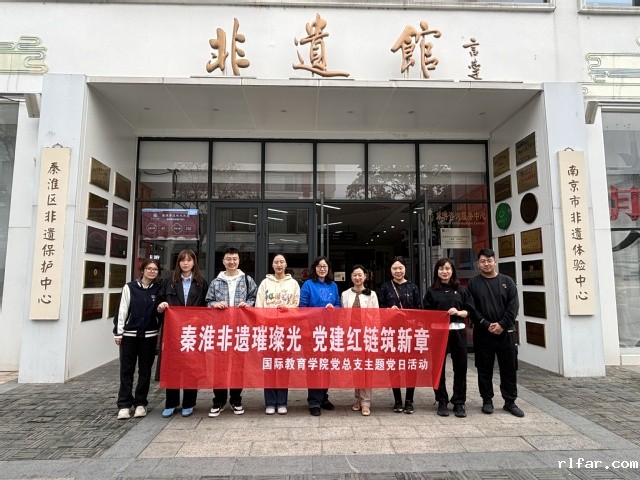 国际教育学院党总支依托基地建设,结合党总支理论学习和中心工作,进一步增强中国故事国际传播力,组织全体教职工党员赴基地开展“秦淮非遗璀璨光,党建红链筑新章”党日活动,并获得学校2024年基层党建品牌创建“书记项目”三等奖。