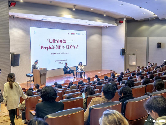会后,Beeple一行前往图书馆报告厅,为我校师生们举办了“从此刻开始—”创作实践工作坊。Beeple结合自身创作经历,详细介绍了数字艺术的最新发展趋势和前沿技术。他通过生动的案例和演示,激发了在场师生的创作灵感,学生们积极与Beeple进行互动交流,现场气氛热烈。