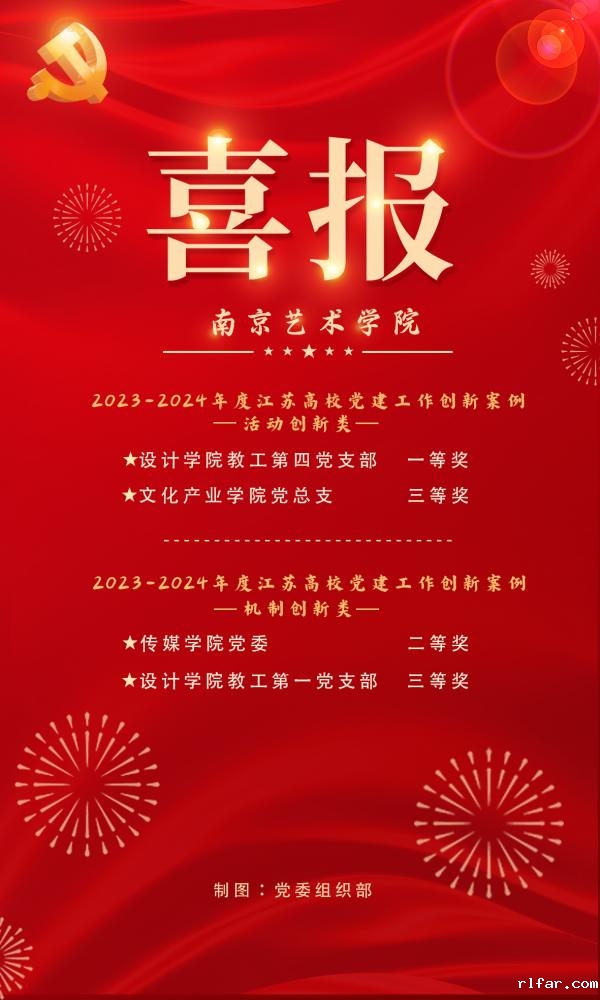 近日,江苏省委教育工委公布了2023-2024年度江苏高校党建工作创新案例评选结果,我校推荐上报的4项案例全部入选。其中,设计学院教工第四党支部《“新时代山乡巨变”创作行动:扬州主题党日》获活动创新类案例一等次;传媒学院党委《守文化根脉 开数智新局》获机制创新类案例二等次;文化产业学院党总支《“文产智汇 兴农筑链”产业链党建联建主题党日》获活动创新类案例三等次;设计学院教工第一党支部《数智创新文化引领——设计学院教工第一党支部党建工作特色品牌》获机制创新类案例三等次。此次评选,我校在党建创新工作中实现了获奖层次和数量的双重突破,创下历史最佳成绩。