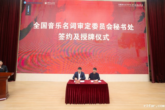 会议举行了全国音乐名词审定委员会秘书处签约与授牌仪式,裴亚军、中国音乐学院院长李心草代表双方签约,音乐名词审定工作正式启动。