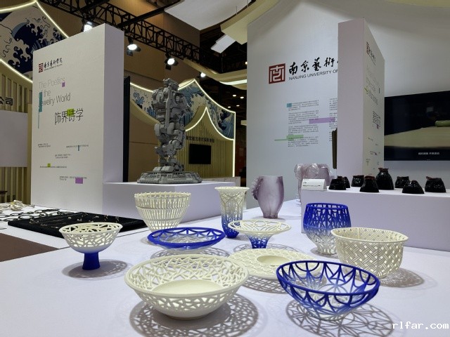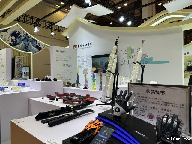 展区围绕“器韵匠芯”“饰界诗学”“数智共生”“形意智造”四大板块,系统展示了智能工业设计、数字媒体艺术、传统工艺焕新等多个方向的师生作品,全面体现学校跨学科、前沿性的艺术探索与创新能力。